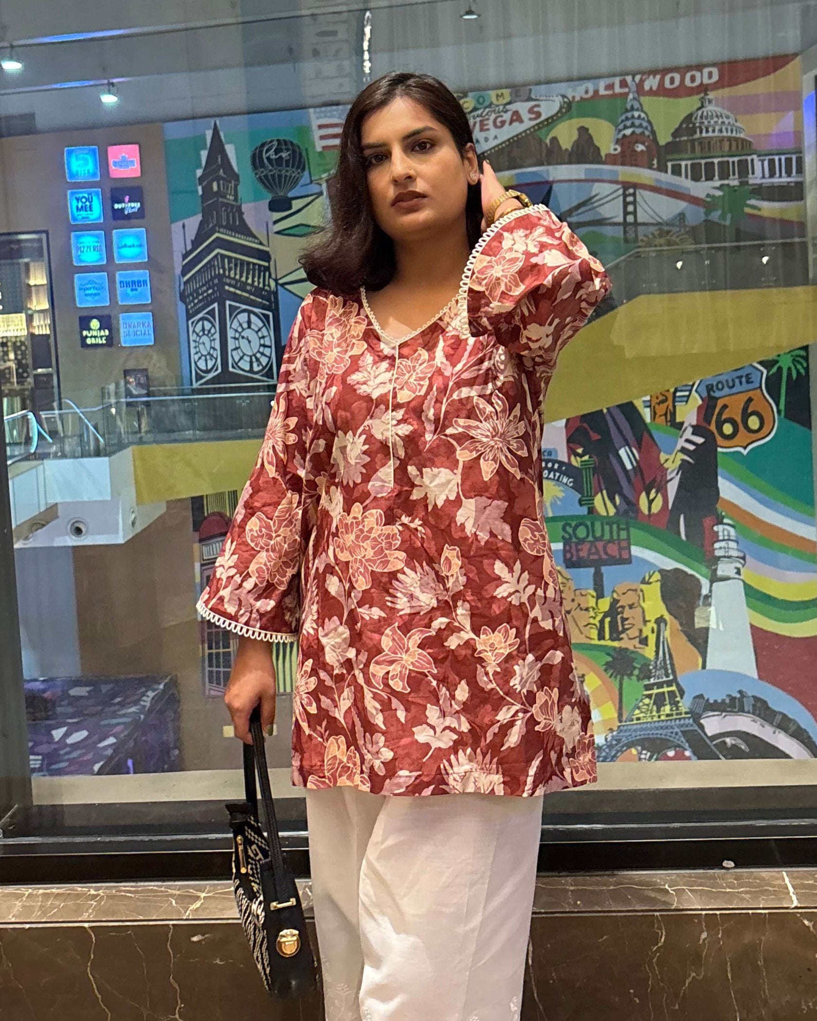 The Brown Floral Loose Short Kurti reflects Punchakshri’s philosophy of effortless grace—designed by women, for women, and thoughtfully crafted by skilled artisans to offer lasting comfort, style, and quality.